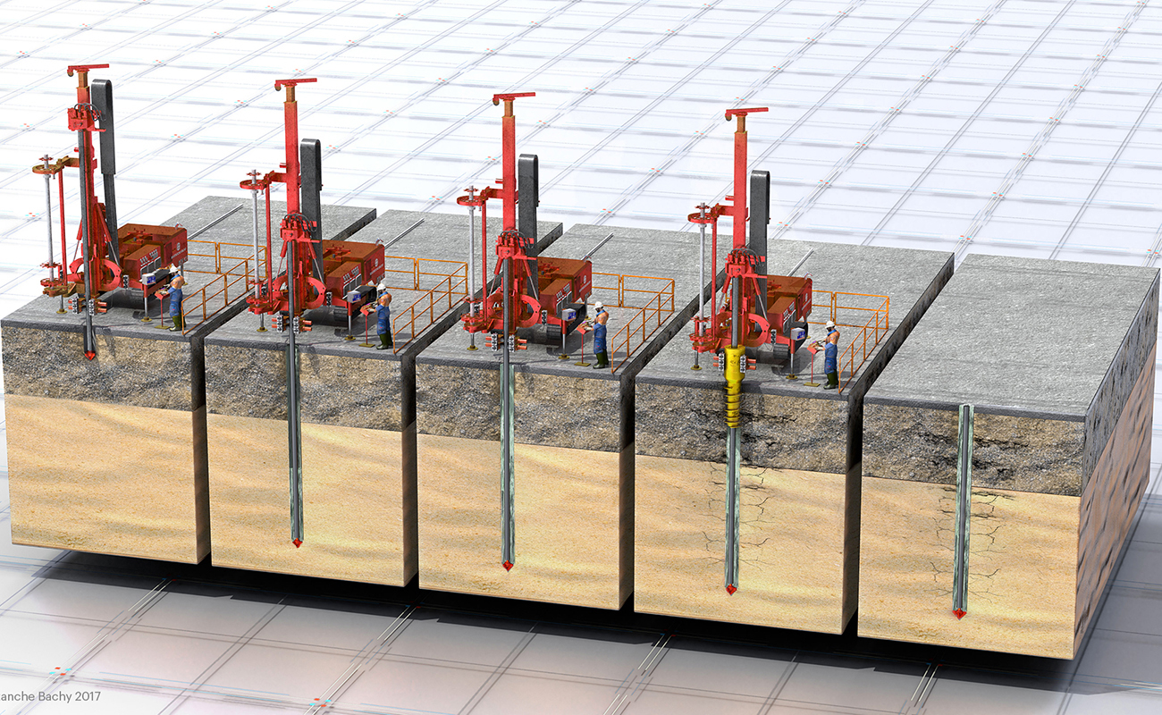 Nuestras técnicas de mejoramiento de suelos consideran columnas de módulo controlado, columnas de grava, vibro-compactación, compactación dinámica, sustitución dinámica, soil mixing, drenes verticales, consolidación vacuum, inyección de suelos, jet grouting e inclusiones rígidas.